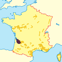 上記の地図で言うとフランス南西部の紫色の部分に当たります。